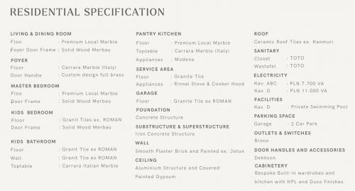 - Lantai 1 : Garasi 4 mobil, kamar pembantu, gudang, dapur kotor