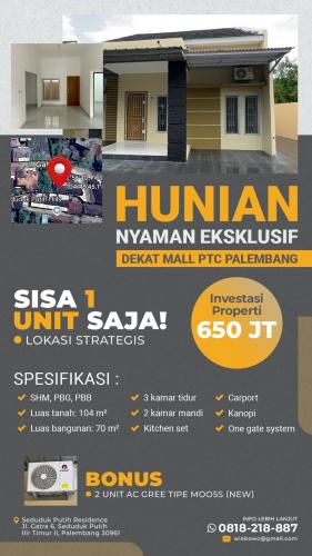 – Dekat dengan mall besar & eksklusif di Palembang (Palembang Square & Palembang Icon).