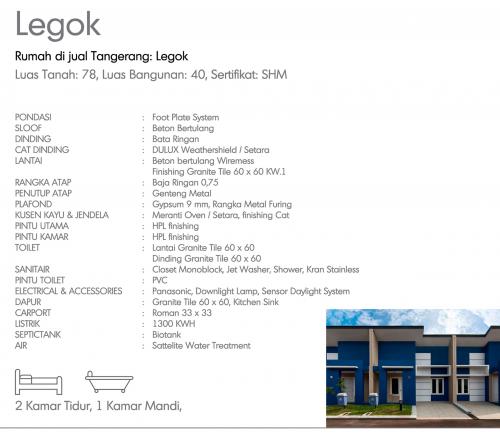 Dijual Rumah Tangerang Tipe 27 / 141 di Legok – Hook – 1 Kamar Tidur