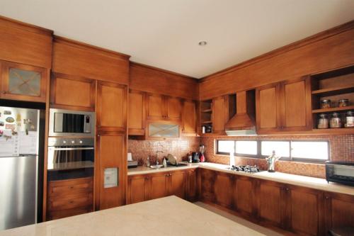 - Additional Info: Minimalis style, Marble floor, Semi-Furnished 24 hr security, 2 cars Garage, 2 cars carport, maids quarter, service area. 4 bedroom 3 bathroom Minimalis style Town-House in a gated compound with 24-hour security. Lounge, dining area, pantry and wet kitchen, Family room, marble floor, Floors are all marble except for master bedroom (6 x 5 m) which has parquet flooring. The master bedroom has fitted wardrobe and an en-suite bathroom with marble floor and walls and separate glass shower cubicle. There is a balcony off of the master bedroom. Bathroom #2 ,serving bedrooms 2 (which has a fitted wardrobe) & 3 also has marble floor and walls and separate glass shower cubicle. The ground floor bathroom serving as a cloakroom and for the guest bedroom (# 1) has marble floor and walls and shower area. The house has been well maintained and split air conditioners installed throughout and water heater, 1 line telephone, Indovision Sat Dish. Ready to move in.