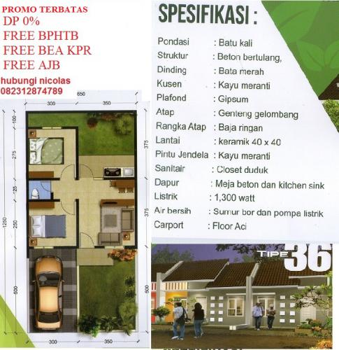 - Kondisi: Baru. PROMO S/D SEPT 2016. Hanya booking unit untuk pembeli bulan ini. Dapatkan promo DP 0% dgn plafond KPR 427 jutaan . Free BPHTB, free bea KPR, free AJB, free bea notaris. Harga terjangkau saat ini di kawasannya, ingat kenaikan properti saat ini yang tak terkendali. Unit terbatas. Inden unit 3 s/d 6 bulan saja serah terima kunci. info lokasi https://goo.gl/maps/BDsZ2wenWAF2.