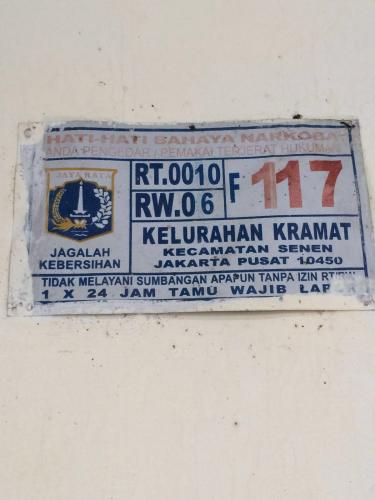 - Lokasi: Jl. Kramat Sentiong RT. 10/06 No. F117 Kelurahan Kramat, Kecamatan Senen, Jakarta Pusat.