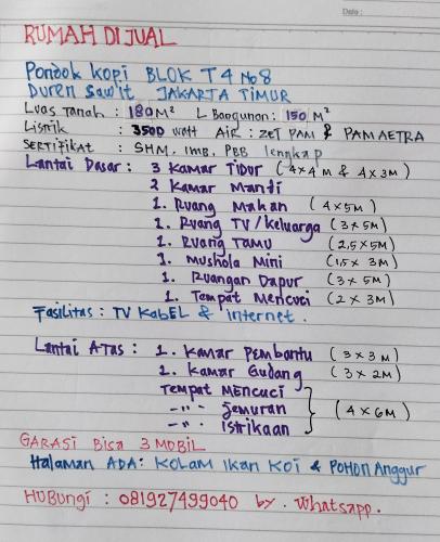 - Lokasi: Perumahan Pondok Kopi Blok T 4 No.8 Jakarta Timur